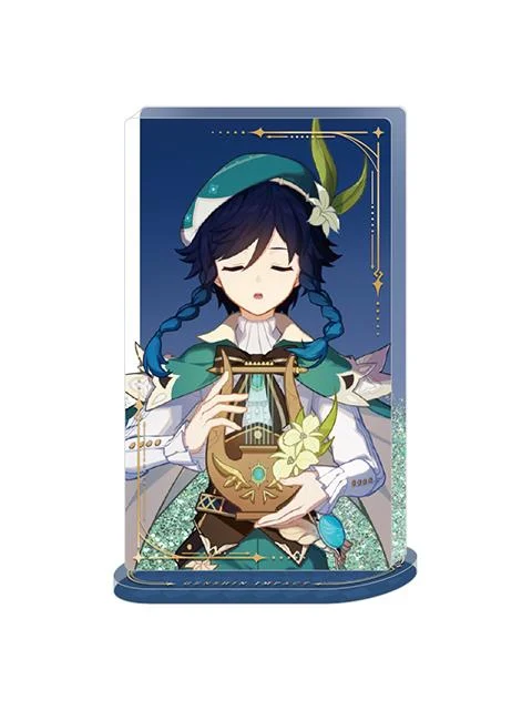 Der elegante Acrylständer mit Venti bringt die zauberhafte Atmosphäre Mondstadts in jede Sammlung. Die Kombination feiner Glitzerpartikel erzeugt einen faszinierenden visuellen Effekt, der sich bei jeder Neigung verändert.