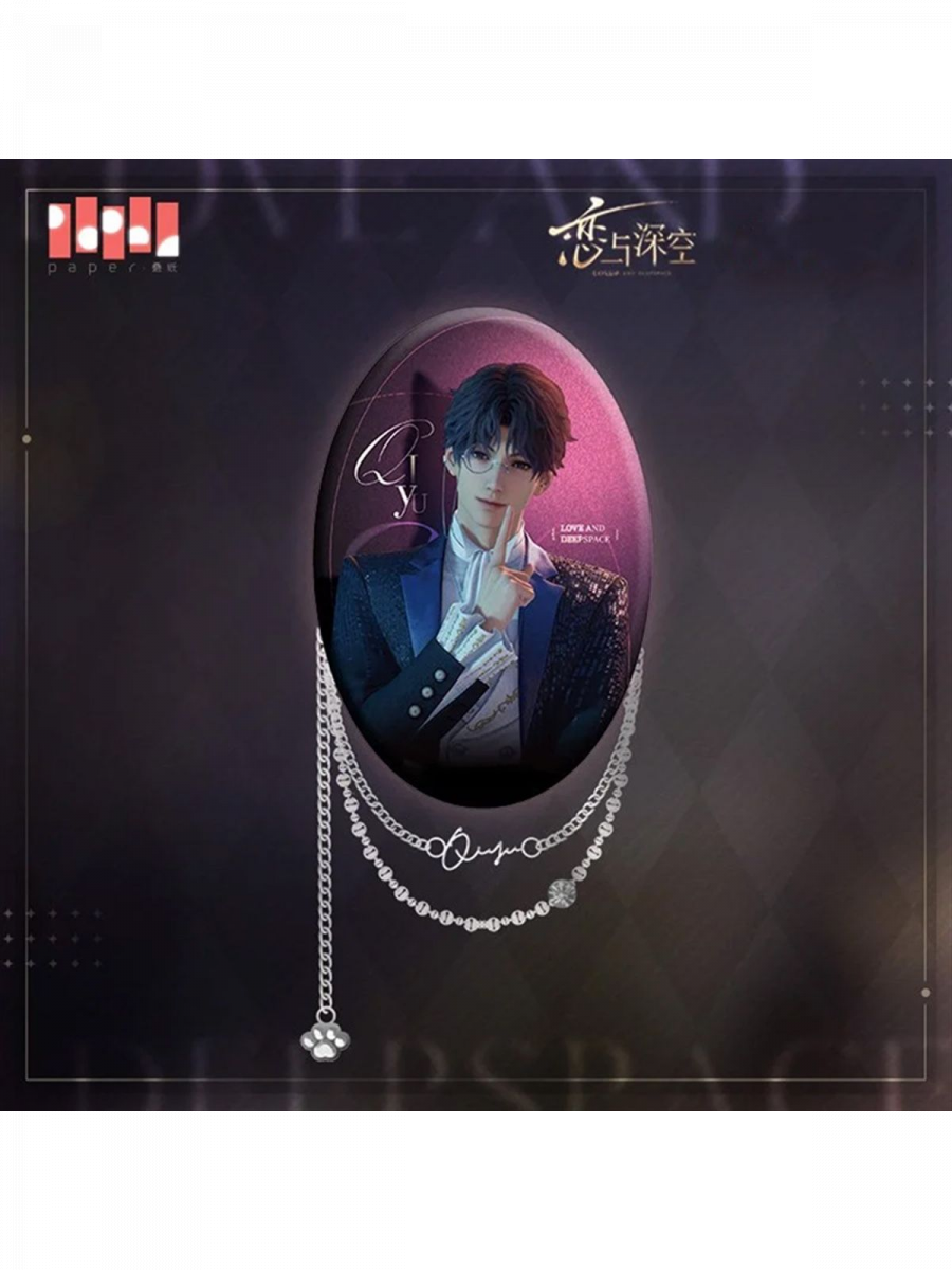 Eleganter Anstecker mit dem Motiv von Rafayel aus Love and Deepspace im tiefvioletten Design, versehen mit der Signatur der Figur und einer zierlichen Kette, die in einem Pfotenanhänger endet. Ein cooles Sammlerstück für Fans des Spiels und Liebhaber detailreicher Accessoires.Material: Metall