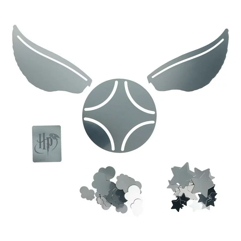 Die Spiegel-Sticker in Form des Goldenen Schnatzes, von Sternen und Wolken verleihen den Wänden einen einzigartigen magischen Effekt und begeistern alle Fans der Welt der Zauberei. Sie lassen sich leicht anbringen und wieder entfernen – die ideale Deko für wahre Hexen und Zauberer. -