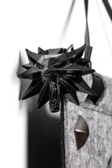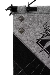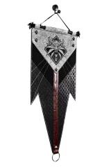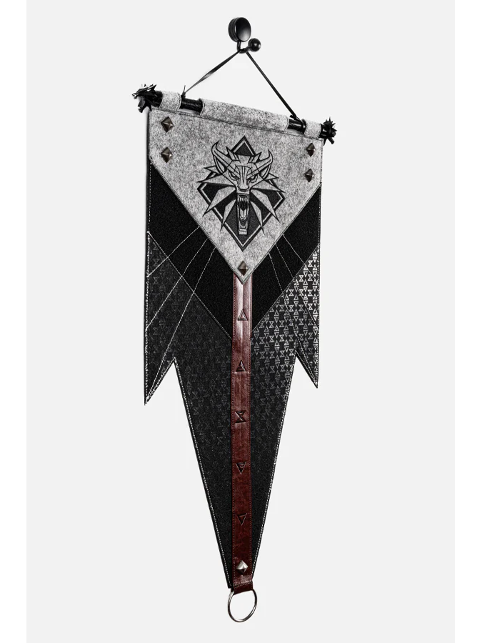 Dank des Klettverschlusses mit Schlaufe können Sie das Banner leicht befestigen und Ihre Zauberer-Abzeichen präsentieren. Oben ist die horizontale Leiste mit zwei Wolfsköpfen verziert, die deiner Witcher-Sammlung einen Hauch von Eleganz und Authentizität verleihen. Das kultige Emblem der Weißen Wölfe ist präzise aufgestickt und macht das Banner zur perfekten Ergänzung deiner Einrichtung. -