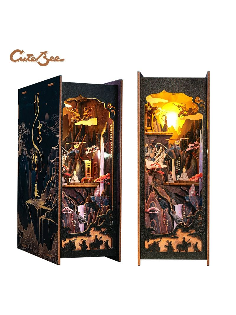 Die warme Hintergrundbeleuchtung hebt jede Figur und die felsige Landschaft hervor und verwandelt das Modell in eine eindrucksvolle Dekoration, die sofort ins Auge fällt. Ein ideales Projekt für alle Liebhaber asiatischer Legenden, Fantasy-Geschichten und kreativen Bastelns.