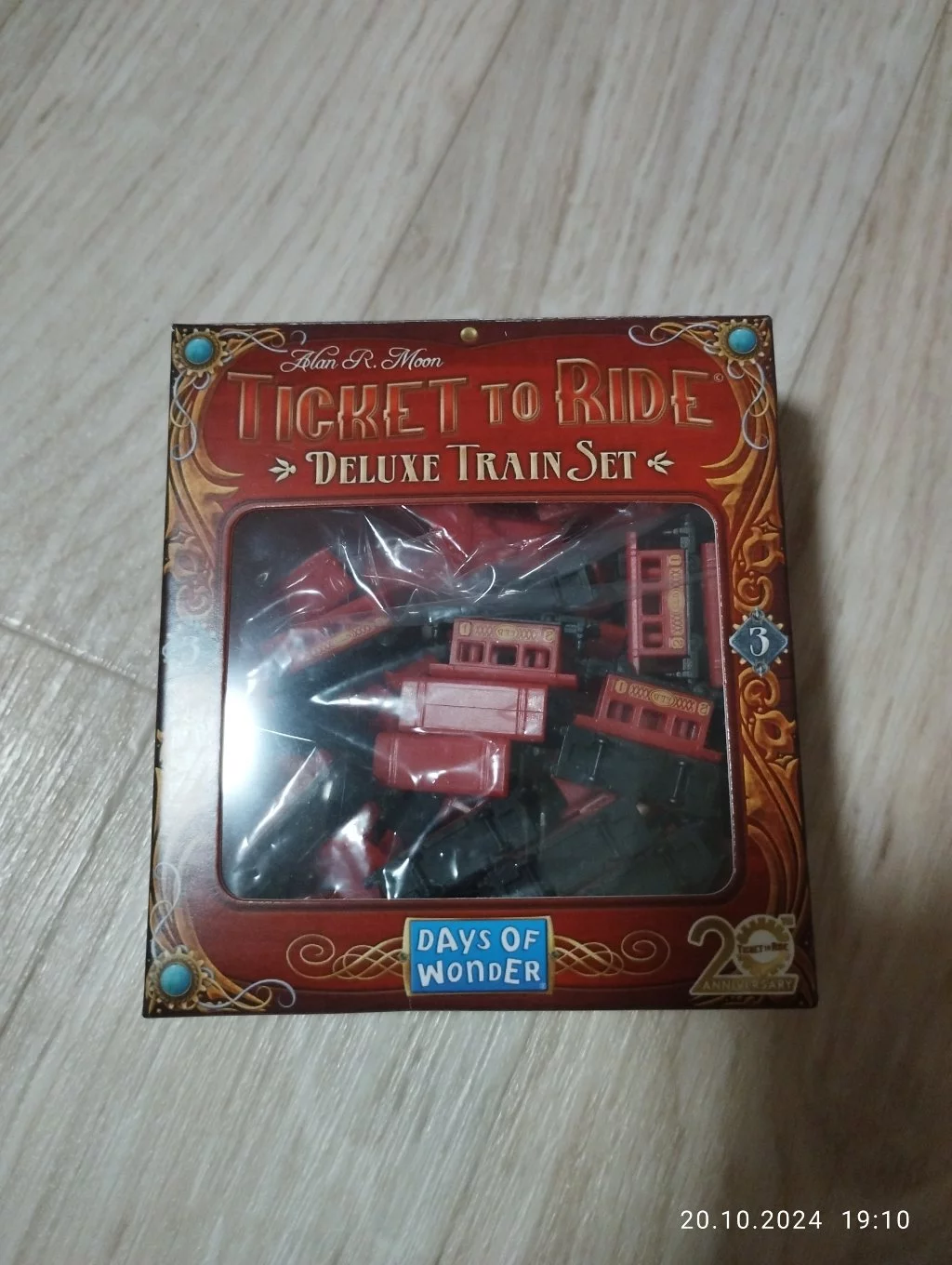 Feiern Sie das 20-jährige Jubiläum des beliebten Spiels Zug um Zug mit diesem speziellen Waggon-Set! Das Set enthält insgesamt 45 Waggons, 3 Bahnhöfe und einen Punktmarker.
