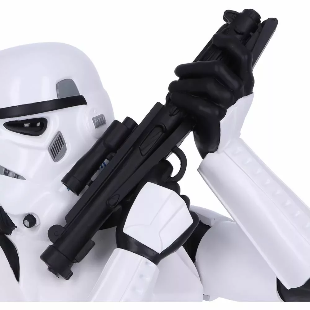 Offiziell lizenzierte Büste eines Stormtroopers aus der legendären Filmreihe Star Wars. Die Büste von Nemesis Now zeigt einen Stormtrooper, bereit für den Kampf, mit seiner Blasterwaffe in Anschlag und ist bereit, sein nächstes Ziel zu verfehlen. Die Büste ist aus hochwertigem Material gefertigt, detailliert modelliert und handbemalt.