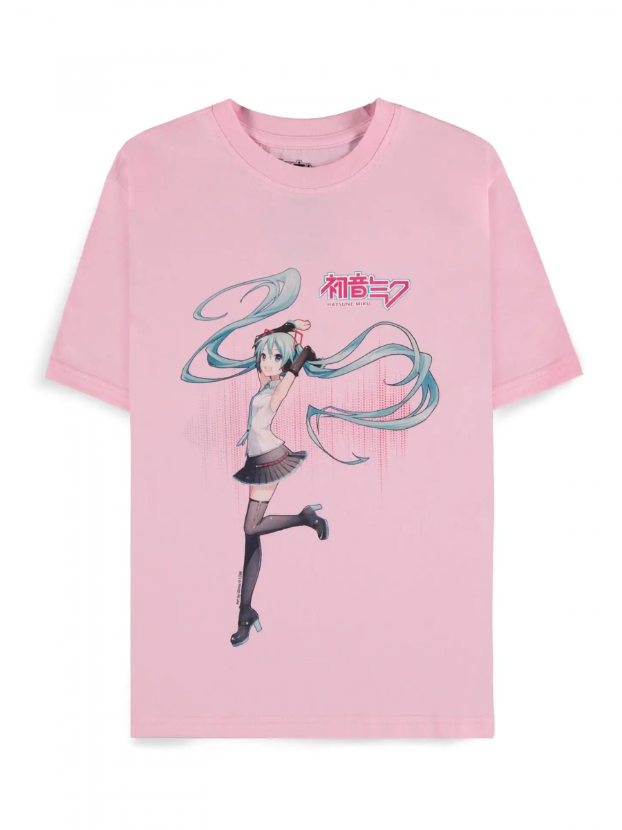 Niedliches rosa T-Shirt mit der legendären virtuellen Sängerin Hatsune Miku, die mit ihrem Style und ihrer Energie jedes Outfit zum Strahlen bringt.
