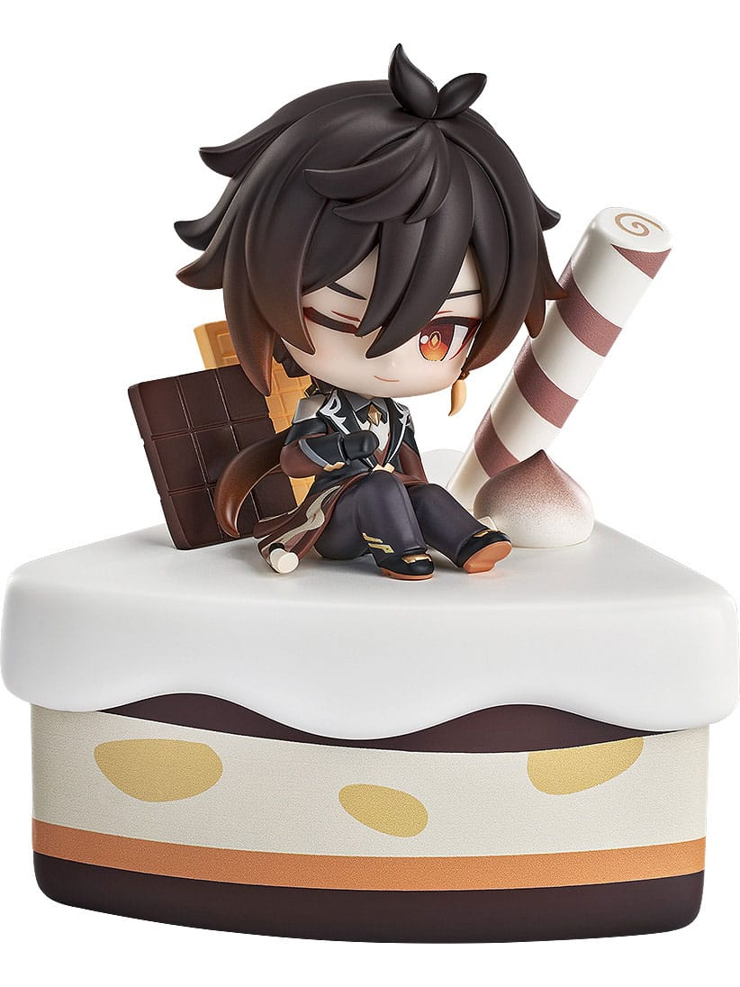 Elegante Zhongli-Sammelfigur aus Genshin Impact aus der Wondrous Chibi Cake-Serie vereint perfekt Würde und Niedlichkeit. Präzise Details, warme Farben und ein Kuchenständer im Stil eines Schokoladendesserts machen diese Miniatur zum idealen Stück für jeden Fan des Geo-Archons.