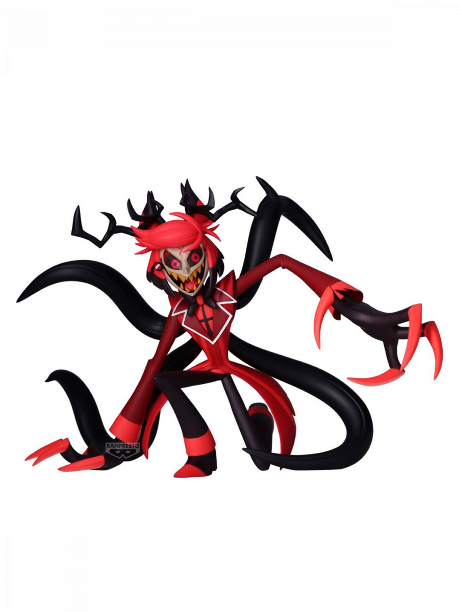 Radio Demon aus Hazbin Hotel in einer unheimlich dynamischen Pose, die seine chaotische Energie und sein unheilvolles Lächeln perfekt einfängt. Eine markante Figur mit scharfen Linien und ikonischem Erscheinungsbild – ein unübersehbares Stück für jeden Fan der Serie.Größe: ca. 17 cm