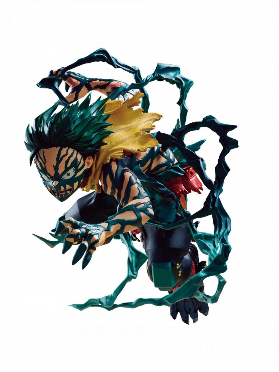 Izuku Midoriya erscheint in der vollen Kraft von One For All als dynamische Figur, die förmlich vor Energie pulsiert. Der elektrisierende Effekt um seinen Körper, die actionreiche Pose und sein entschlossener Ausdruck fangen den Moment ein, in dem Deku seine Grenzen überschreitet.