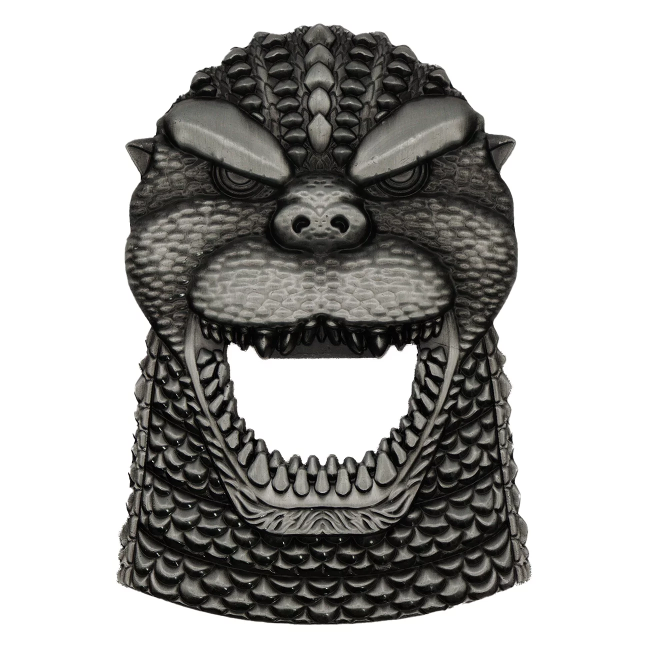 Ein Must-Have für jeden Fan des Königs der Monster. Dieser massive Metall-Flaschenöffner in Form eines Godzilla-Kopfes beeindruckt mit starken Details, brutaler Mimik und einem Look, den man am Kühlschrank garantiert nicht übersieht.