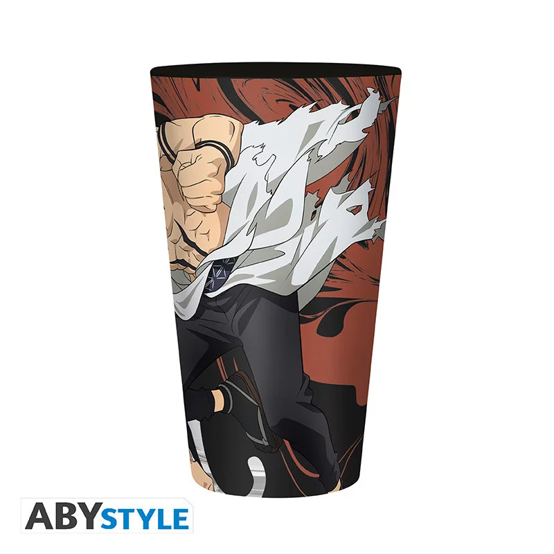 Energie strömt von allen Seiten. Dieses coole Glas fängt den intensiven Zusammenstoß von Itadori und Sukuna ein - zwei Seelen, die sich einen Körper teilen. Der markante, dynamische Druck verleiht dem Getränk eine ordentliche Portion Jujutsu-Energie.