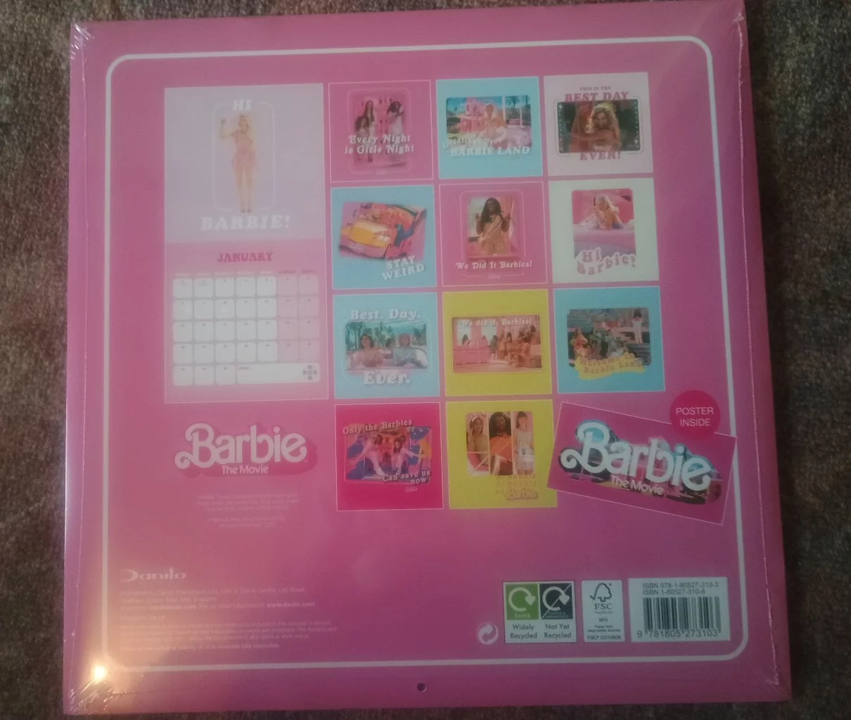 Quadratischer Kalender Barbie 2024. Dieser offizielle Kalender basiert auf dem neuen beliebten Spielfilm Barbie mit Margot Robbie in der Hauptrolle. Neben unterhaltsamen Bildern dieser Schlüsselcharaktere gibt es große Monatspaneele mit Daten, wo Sie Termine, Geburtstage und viele Notizen festhalten können.