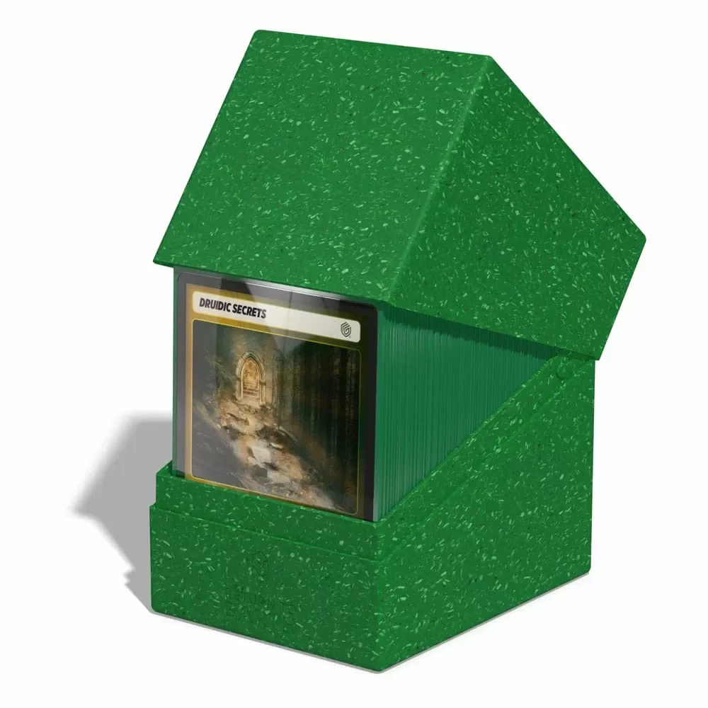 Beliebte Boulder Deck Case kehrt mit einer nachhaltigeren Version zurück. Ultimate Guard übernimmt Verantwortung für die ökologische Herstellung und sucht nach Lösungen, die umweltfreundlich sind. Dieses Modell kann bis zu 133 Karten in doppelten Hüllen oder mehr als 160 Karten in einfachen Hüllen der Standardgröße in Ultimate Guard Hüllen aufnehmen. Es bietet große Variabilität, sicheren Verschluss und Kompatibilität mit anderen Produkten des Unternehmens. Lokal entwickelt und produziert in Deutschland, wobei 87% des Materials aus erneuerbaren Quellen stammen und mit jedem Kauf dieses Produkts unterstützen Sie direkt die globale Wiederaufforstung.Abmessungen: 76 x 100 x 99 mm