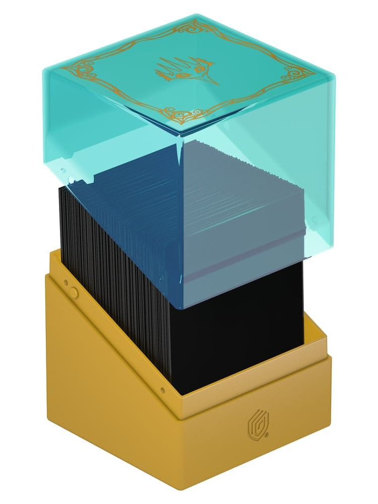 Die robuste Konstruktion schützt zuverlässig bis zu 100 doppelt gesleevte Karten, während der transparente Deckel mit einem dezenten Changeling-Motiv der Box ein elegantes Aussehen verleiht. Sie behält perfekt ihre Form, öffnet sich nicht von selbst und eignet sich sowohl zum Spielen als auch zum sicheren Transport des Decks zu Turnieren.