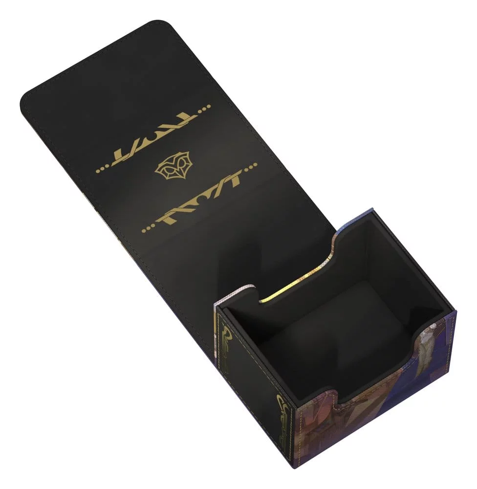 Die robuste Xenoskin-Oberfläche, die stabile Konstruktion und das weiche Innenmaterial schützen eure Karten vor Beschädigungen, während der starke Magnetverschluss dafür sorgt, dass alles sicher an seinem Platz bleibt. Die ideale Wahl für Spieler und Sammler von Magic: The Gathering, die ihr Deck stets perfekt vorbereitet haben möchten.