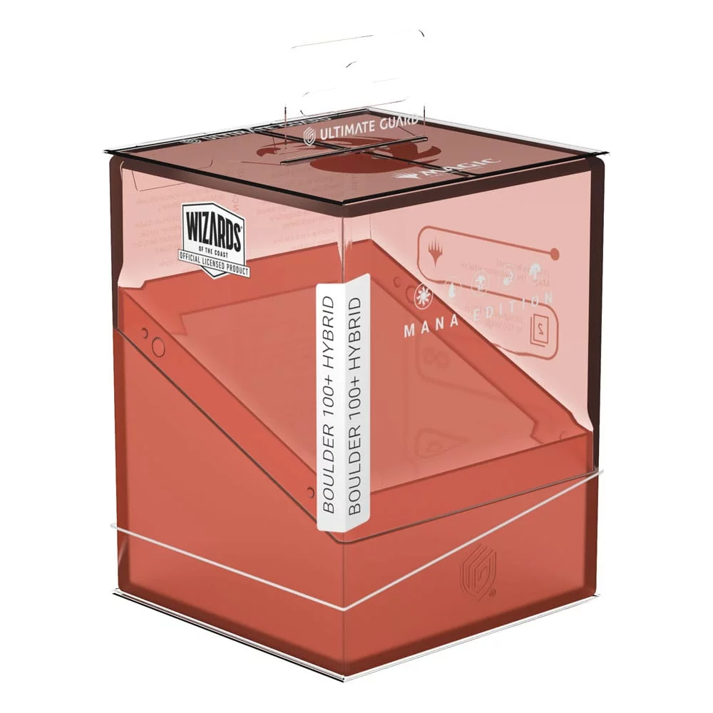 Robuste Box Ultimate Guard – Mana Edition – Boulder Deck Case Mountain (100+) – ideal zur sicheren Aufbewahrung von über 100 geschützten Karten. Im roten Design, inspiriert vom Land Mountain, begeistert er jeden Magic: The Gathering-Fan und bietet coolen Schutz für die Sammlung.