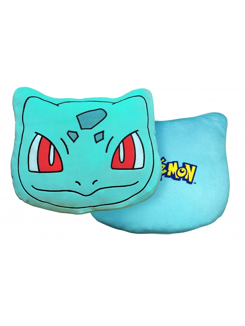 Ein bequemen Kissen mit Pokémon-Motiv in der Form von Bulbasaur für die Erholung nach dem anstrengenden Spielen eines der vielen beliebten Spiele der Pokémon-Serie.
