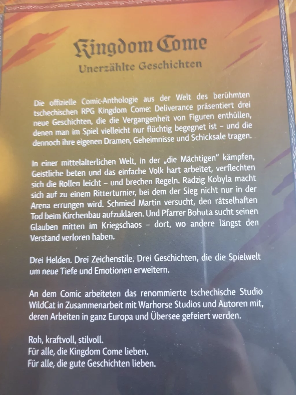 Der Comic entstand in Zusammenarbeit mit Warhorse Studios, unter der Leitung des erfolgreichsten tschechischen Comic-Studios WildCat, und mit preisgekrönten Autoren und Illustratoren. Ein Muss für jeden Fan von Kingdom Come: Deliverance – und für alle, die fesselnde historische Erzählungen lieben!Autoren: Matyáš Namai, Jan Studnička, Michael Purmenský, Petr Štich