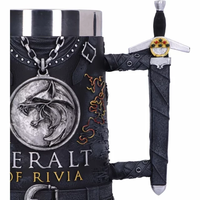 Offiziell lizenzierter und handbemalter Bierkrug mit dem Serienmotiv The Witcher (The Witcher). Er ist aus hochwertigem Material mit einem Inneren aus Edelstahl gefertigt, um ein schönes Trinkerlebnis zu gewährleisten! Der Bierkrug ist in Form von Geralts Rüstung gestaltet, einschließlich seines Medaillons. Der Griff des Krugs ist eine Replik des berühmten Schwerts in der Scheide. Auf dem gesamten Krug befinden sich mehrere Zeichen, die jeden Witcher-Fan begeistern werden.