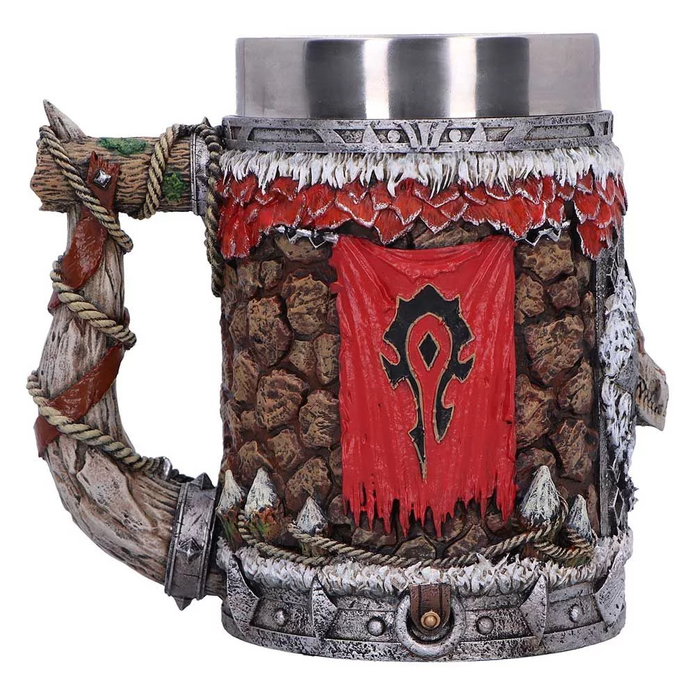 Ein rauer, von der Welt von World of Warcraft inspirierter Krug, der deutlich seine Zugehörigkeit zur Horde zeigt. Das massive Design, das markante rote Emblem und die Kombination aus Stein-, Holz- und Felldetails verkörpern perfekt die rohe Kraft und den Kampfgeist dieser Fraktion.