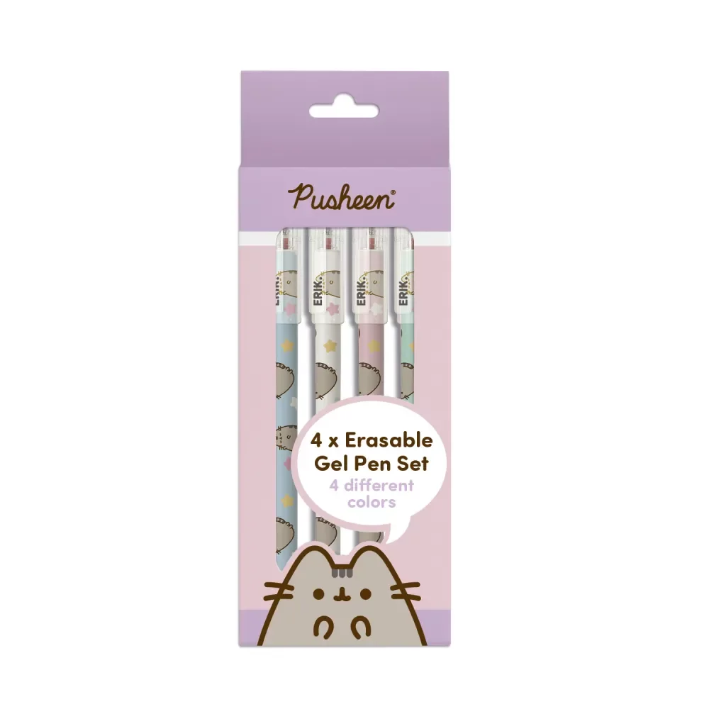 Das Kugelschreiberset Pusheen – Stars enthält vier pastellfarbene Stifte mit einem süßen Katzenmotiv zwischen Sternchen. Ideal für das Federmäppchen, den Kalender oder den Schreibtisch – für alle, die jede Notiz ein bisschen süsser gestalten möchten.