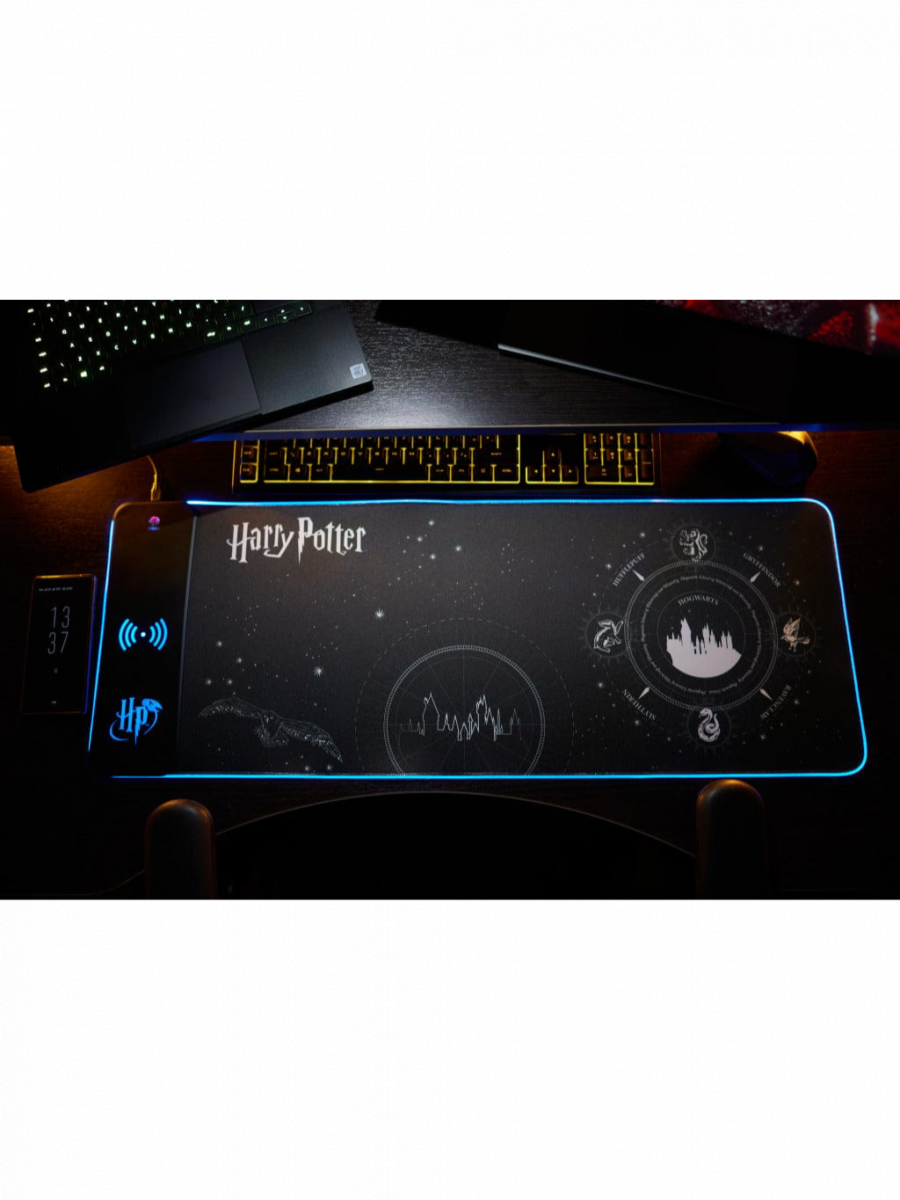 Hochwertiges großes Maus- und Tastaturpad mit eingebautem drahtlosen Ladegerät und RGB-Beleuchtung. Das Motiv auf dem Pad wird vor allem Fans von Harry Potter begeistern. Perfektes Zubehör für dein Gaming-Setup.