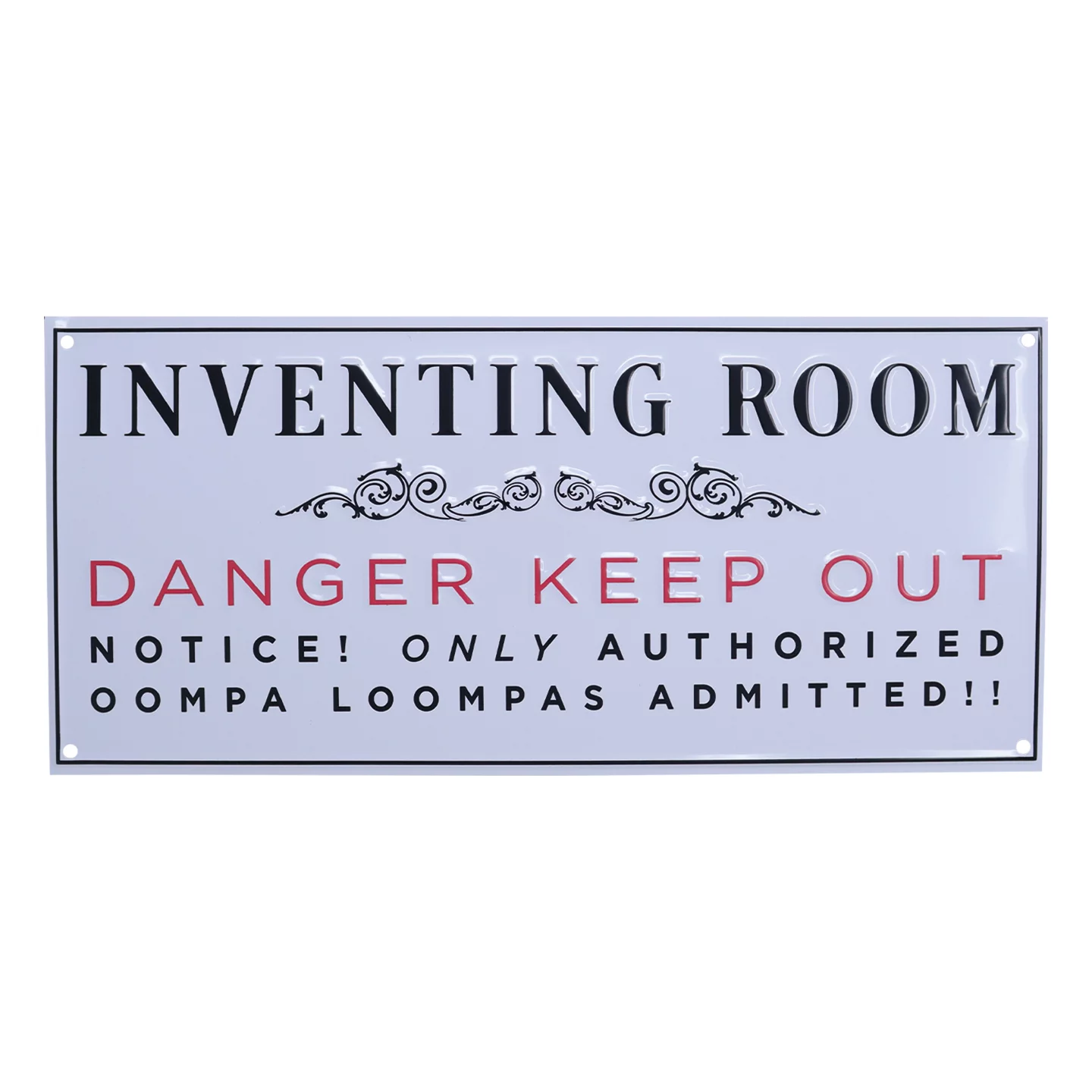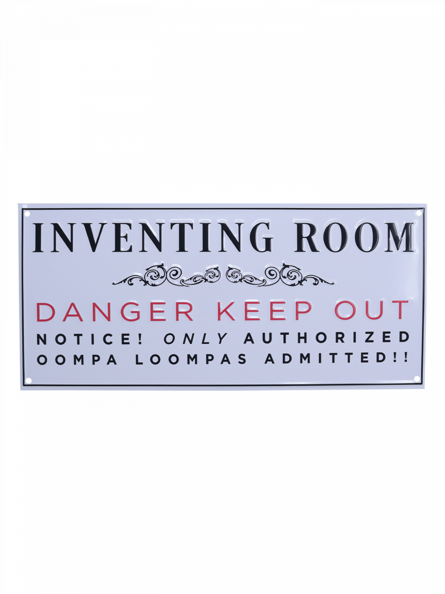 Gebt eurem Raum eine Prise magischen Chaos mit diesem Blech-Schild aus Willy Wonka and the Chocolate Factory. Das Schild mit der Aufschrift „Inventing Room – Danger Keep Out“ wirkt wie eine echte Warnung direkt aus der Schokoladenfabrik und ist ein originelles Deko-Highlight für Gaming-Room, Küche oder Filmsammlung.