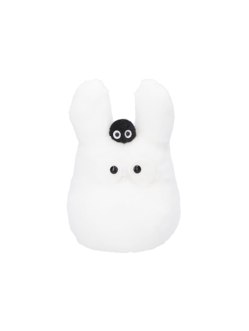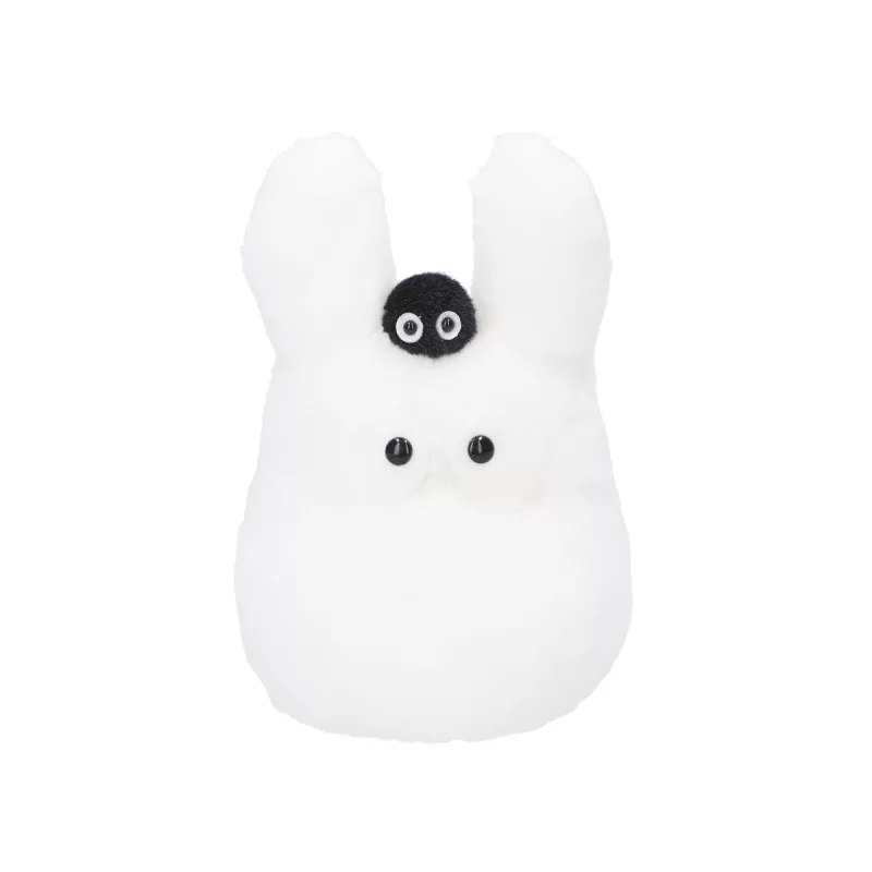 Der Ghibli-Plüsch – Small Totoro Beanbag (Mein Nachbar Totoro) zeigt den niedlichen weißen Totoro mit einem kleinen schwarzen Rußgeist auf dem Kopf. Dank des weichen Materials ist er ideal zum Kuscheln oder als Dekoration.