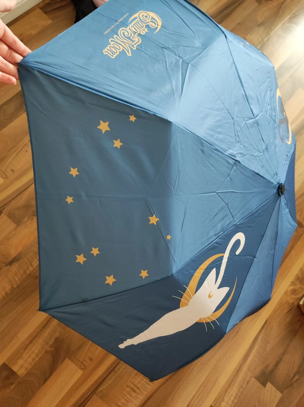Wunderschöner Regenschirm mit Luna und Artemis Motiv für alle Fans des legendären japanischen Anime Sailor Moon.