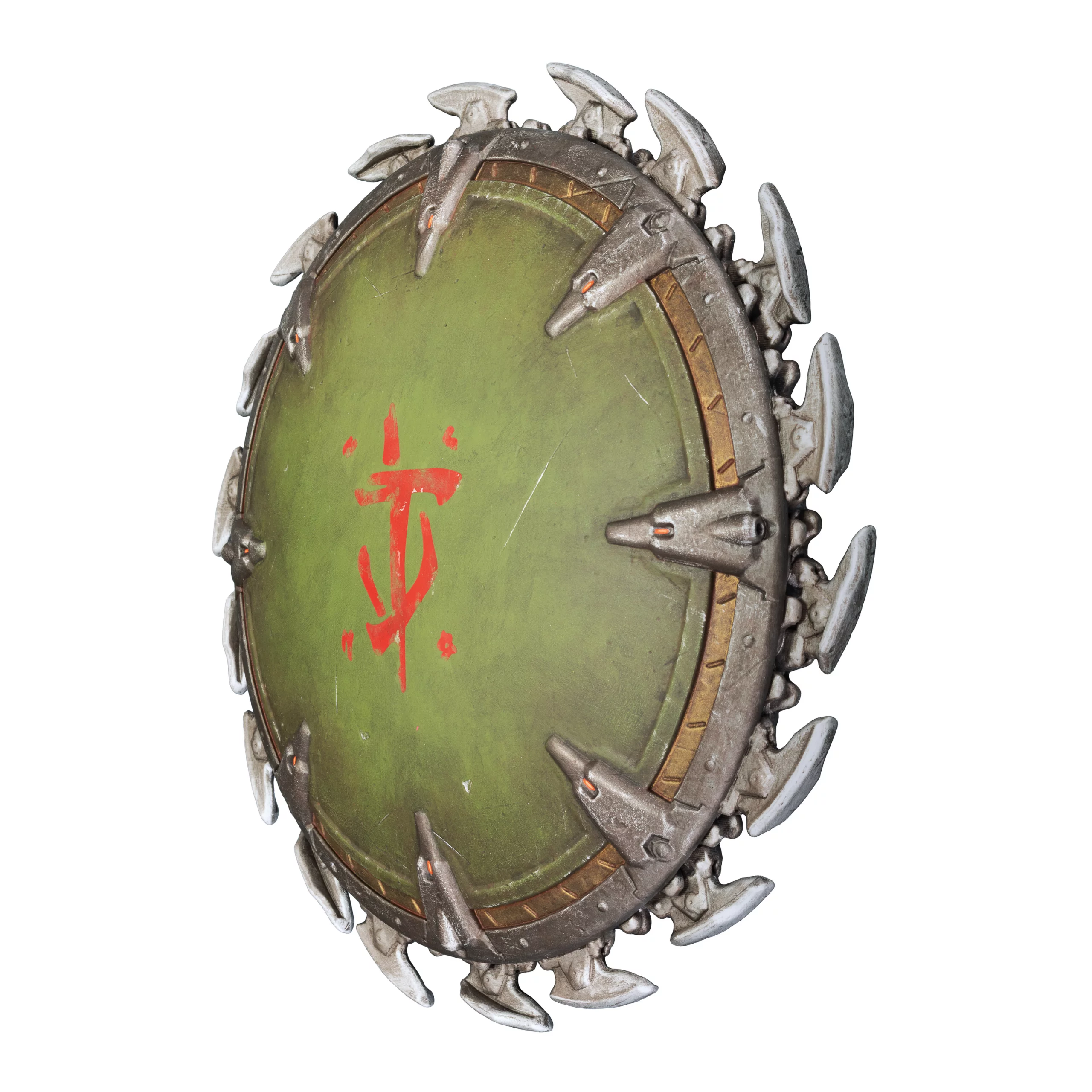Das massive Erscheinungsbild, die raue Verarbeitung und das markante Symbol machen sie zu einem unübersehbaren Stück für Fans von DOOM ebenso wie für Sammler von Gaming-Artefakten.