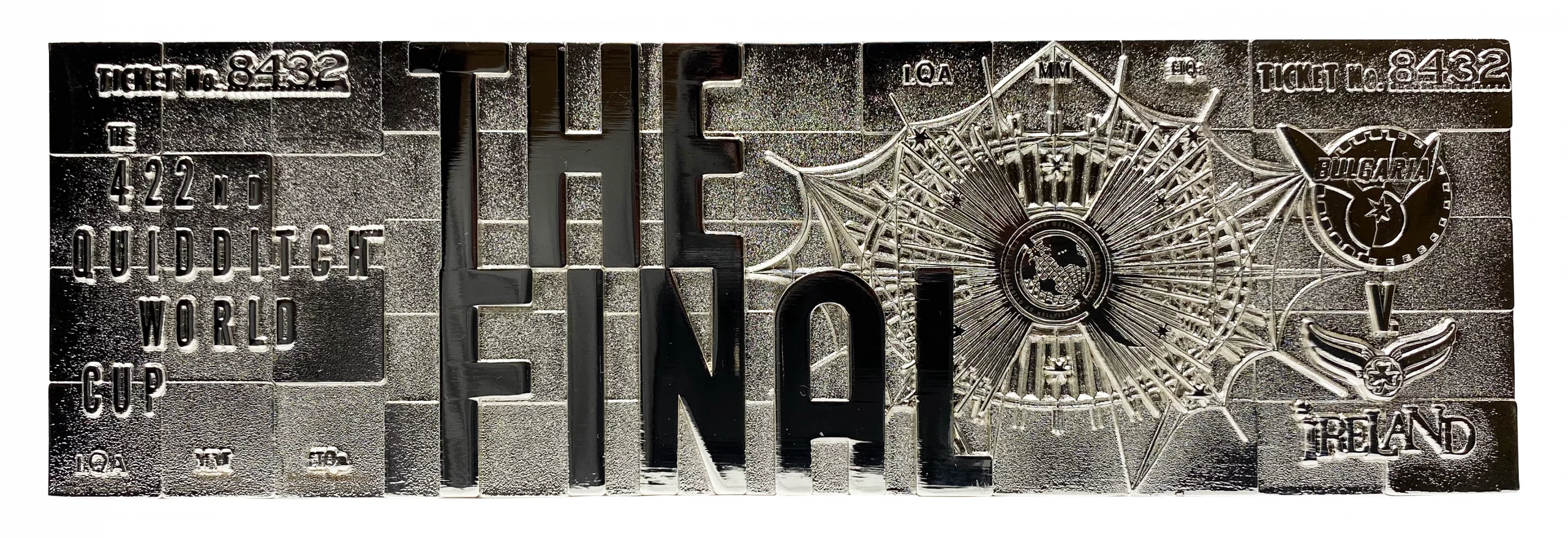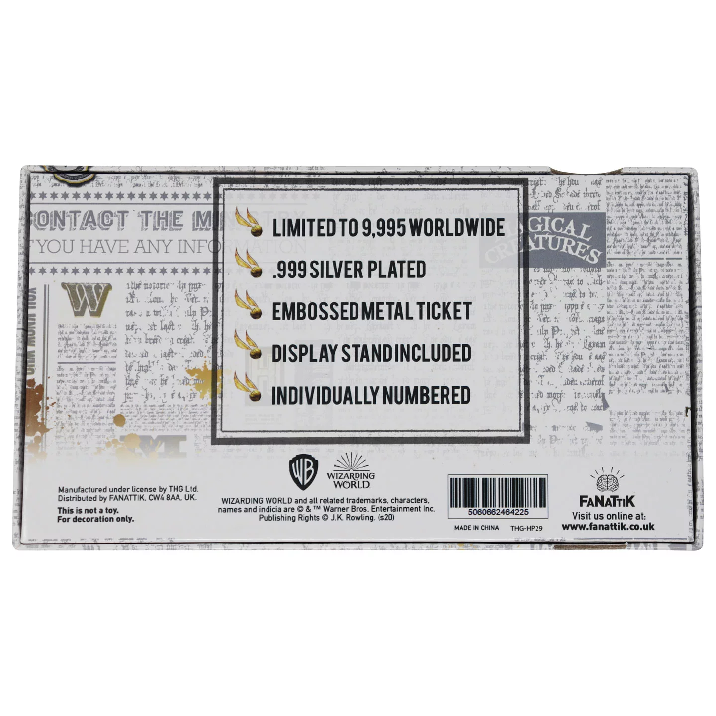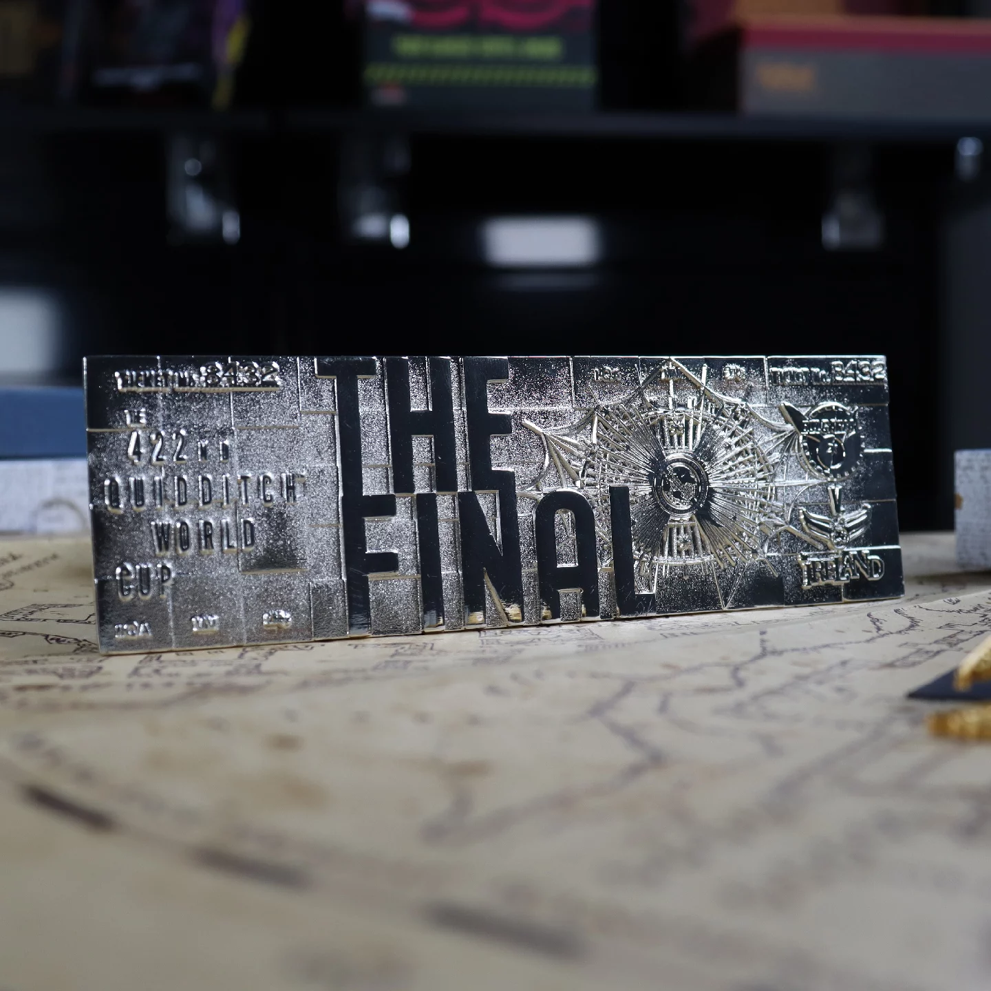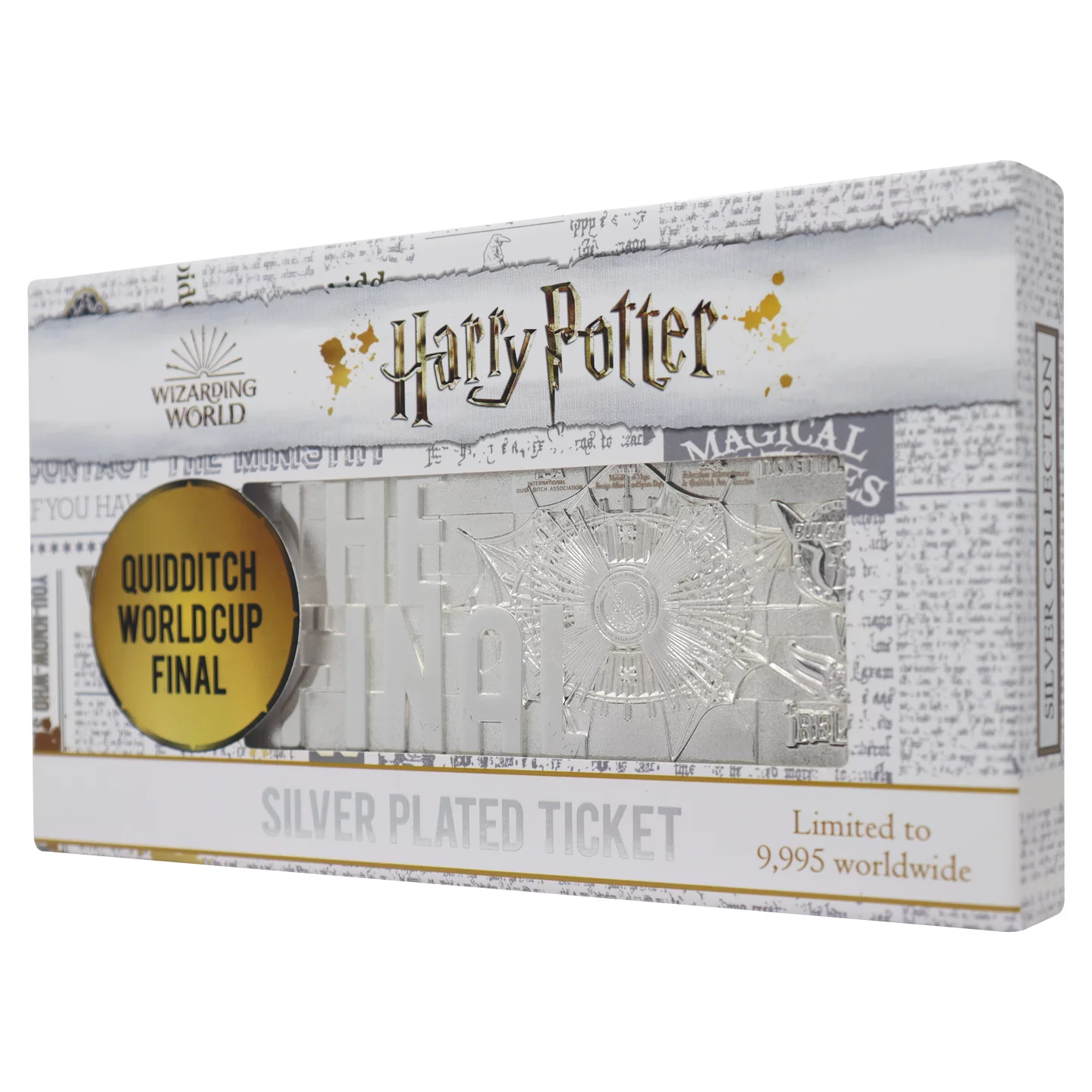 Diese Nachbildung des silbernen Tickets für das Finale der Quidditch-Weltmeisterschaft ist ein markantes Sammlerstück für jeden Harry-Potter-Fan. Das Ticket ist mit Feinsilber .999 veredelt und zeigt ein detailreiches Relief der legendären Begegnung Bulgarien gegen Irland.