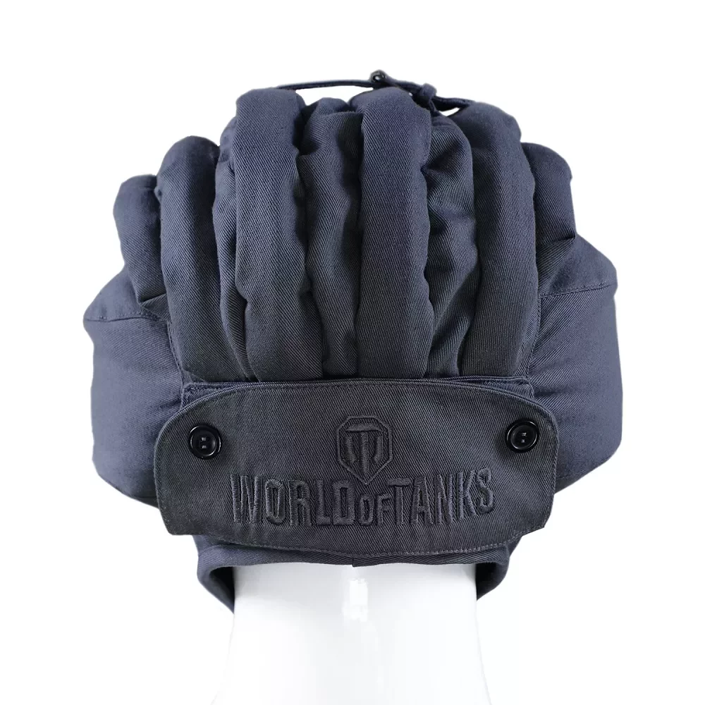 Plüschreplik des Panzerhelm für Fans des Spiels World of Tanks. Auf der Vorderseite ist das Logo des Spiels World of Tanks gestickt, am Hut befindet sich ein Lederriemen mit einer Metallschnalle.