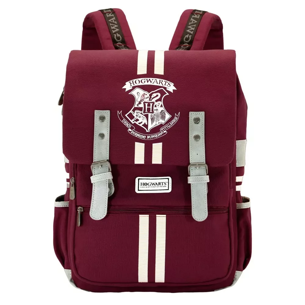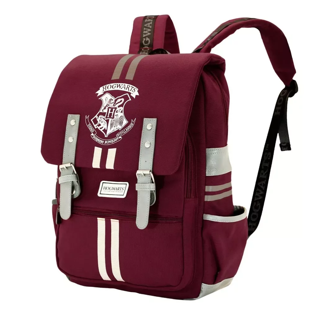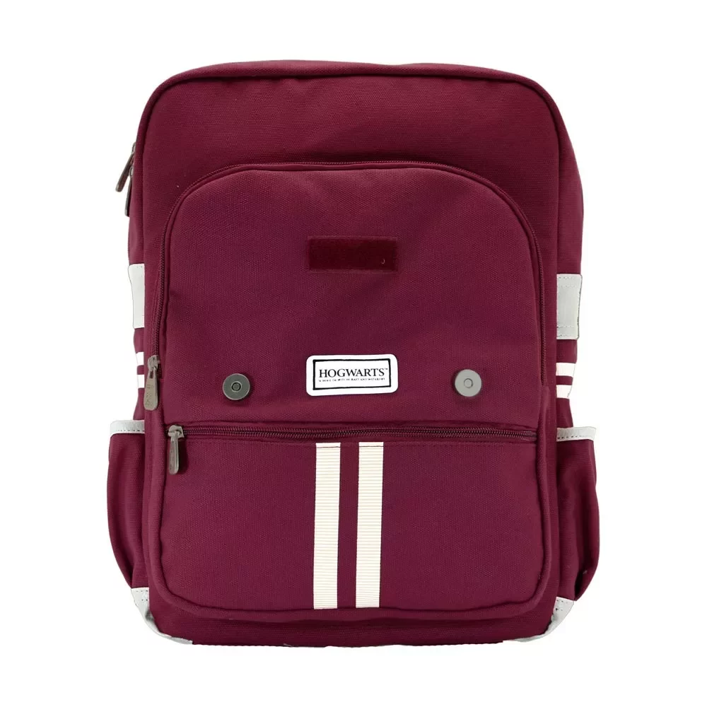 Weinroter Rucksack mit Retro-Aussehen wird vor allem Liebhaber der Magie und der Welt von Harry Potter begeistern. Der Rucksack ist mit einer thematischen Stickerei des Wappens von Hogwarts verziert und bietet ein separates Innenfach für elektronische Geräte sowie seitliche Taschen für eine Flasche oder Kleinigkeiten. Der Rucksack eignet sich für Muggel ebenso wie für Schüler der Zaubererschule in Hogwarts.