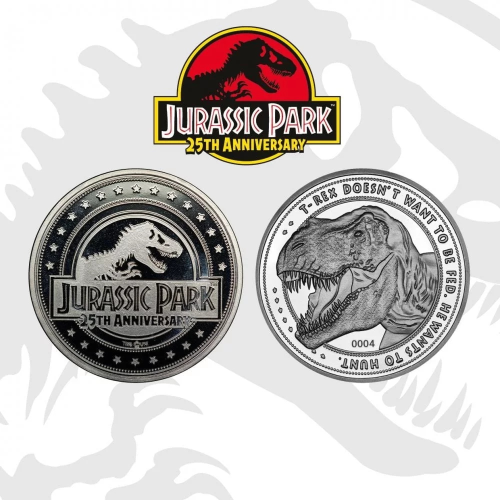 Sammlermünze inspiriert vom Film Jurassic Park (Jurassic Park), herausgegeben von Fanattik, ist weltweit auf 9995 Stück limitiert, beidseitig geprägt und jedes Stück ist einzigartig nummeriert. Verpackt in einer Sammler-Blisterpackung.