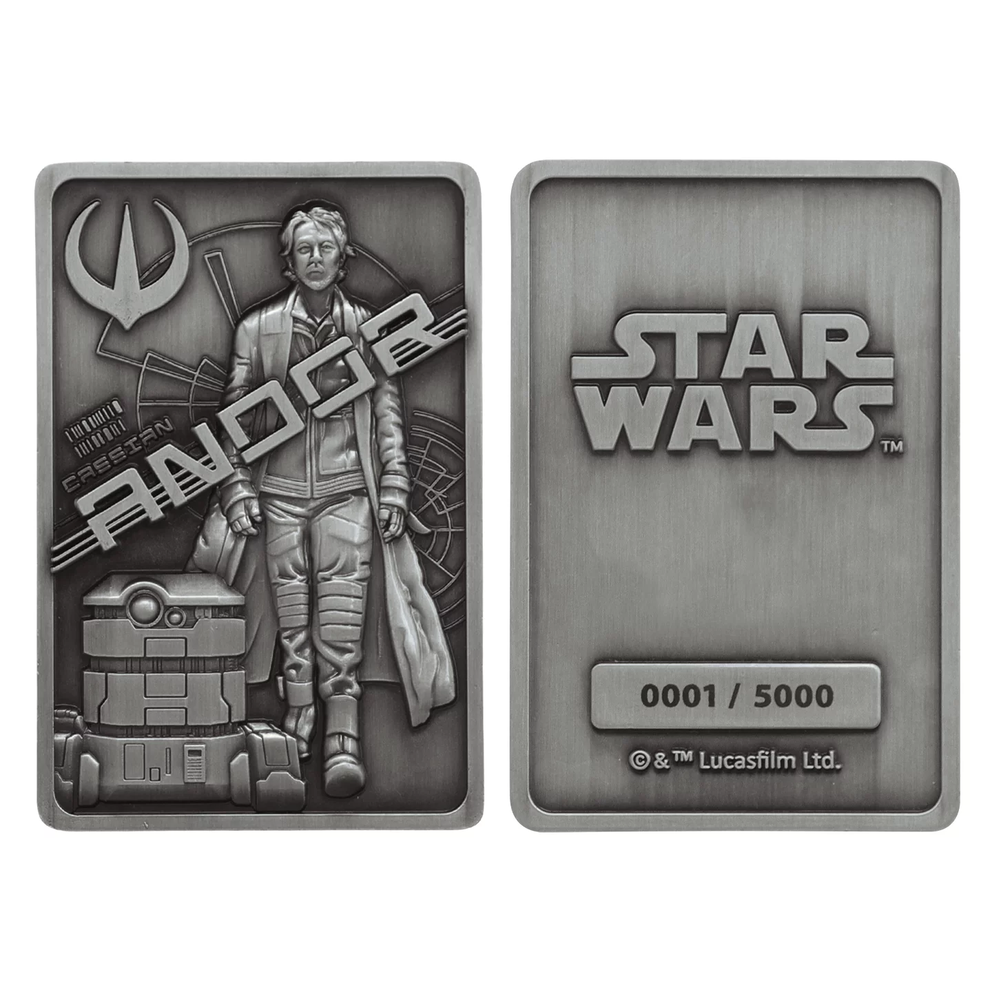 Betretet die Welt des Widerstands mit dieser offiziellen Limited-Edition-Plakette zu Ehren von Cassian Andor – einem der wichtigsten Helden der Rebellion. Dieser metallene Ingot zeigt Cassian und den treuen Droiden B2EMO in einem detailreichen, geprägten Design, das jeder Fan der Serie zu schätzen weiß.