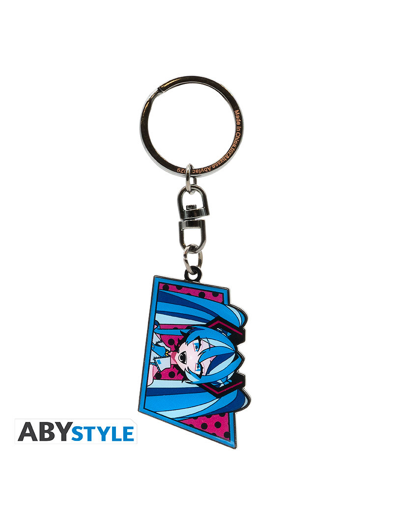 Der stylische Schlüsselanhänger mit markantem Pop-Art-Design zeigt die ikonische Vocaloid-Sängerin in einer modernen Interpretation voller Kontraste und Details.
