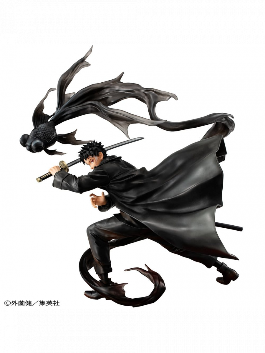 Die Statue von MegaHouse fängt einen extrem dynamischen Moment des Kampfes ein. Sowohl der Mantel als auch die verfluchte Energie in Form eines schwarzen Fisches erzeugen ein starkes Gefühl von Bewegung und verleihen der gesamten Komposition eine dramatische Tiefe. Die Details an Kleidung, Gesichtsausdruck und Waffe unterstreichen Chihiros Entschlossenheit und kühle Konzentration.