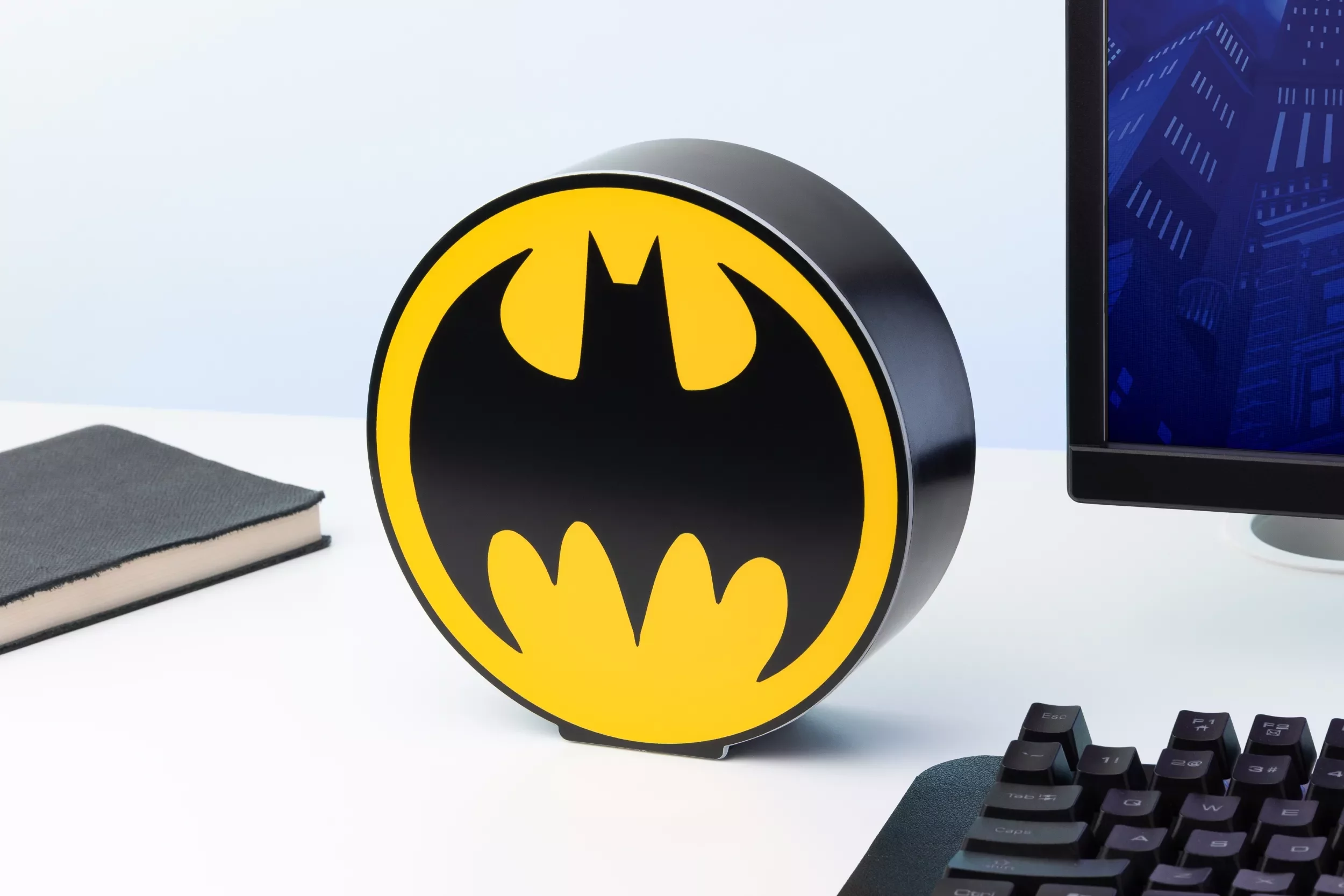 Brauchen Sie, um den Fledermaus-Superhelden zur Hilfe zu rufen, oder suchen Sie nach einer tollen Dekoration, die Ihr Zimmer zum Leuchten bringt? Für beide Fälle ist diese Lampe von Paladone perfekt geeignet! Die Lampe wird mit Batterien betrieben, Sie können sie also wirklich überall platzieren!
