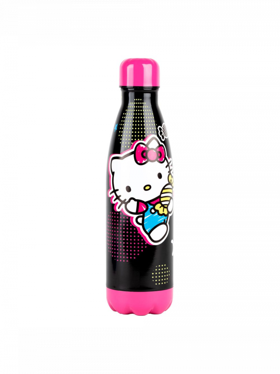 Die schwarze Flasche mit verspieltem Motiv Hello Kitty und süßen Details fällt sofort ins Auge. Ideal für Schule, Arbeit und unterwegs - für alle, die ihr Getränk stets griffbereit haben und zugleich ihre Liebe zum ikonischen Stil von Sanrio zeigen möchten.Volumen: 500 ml