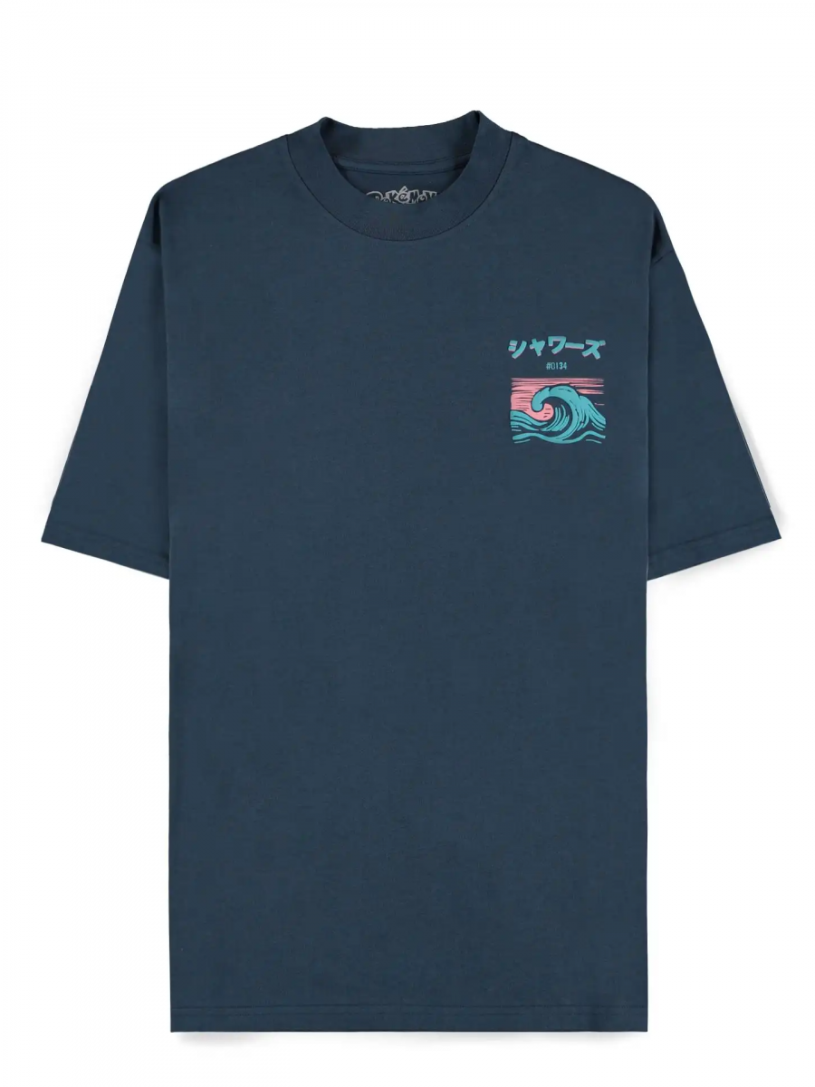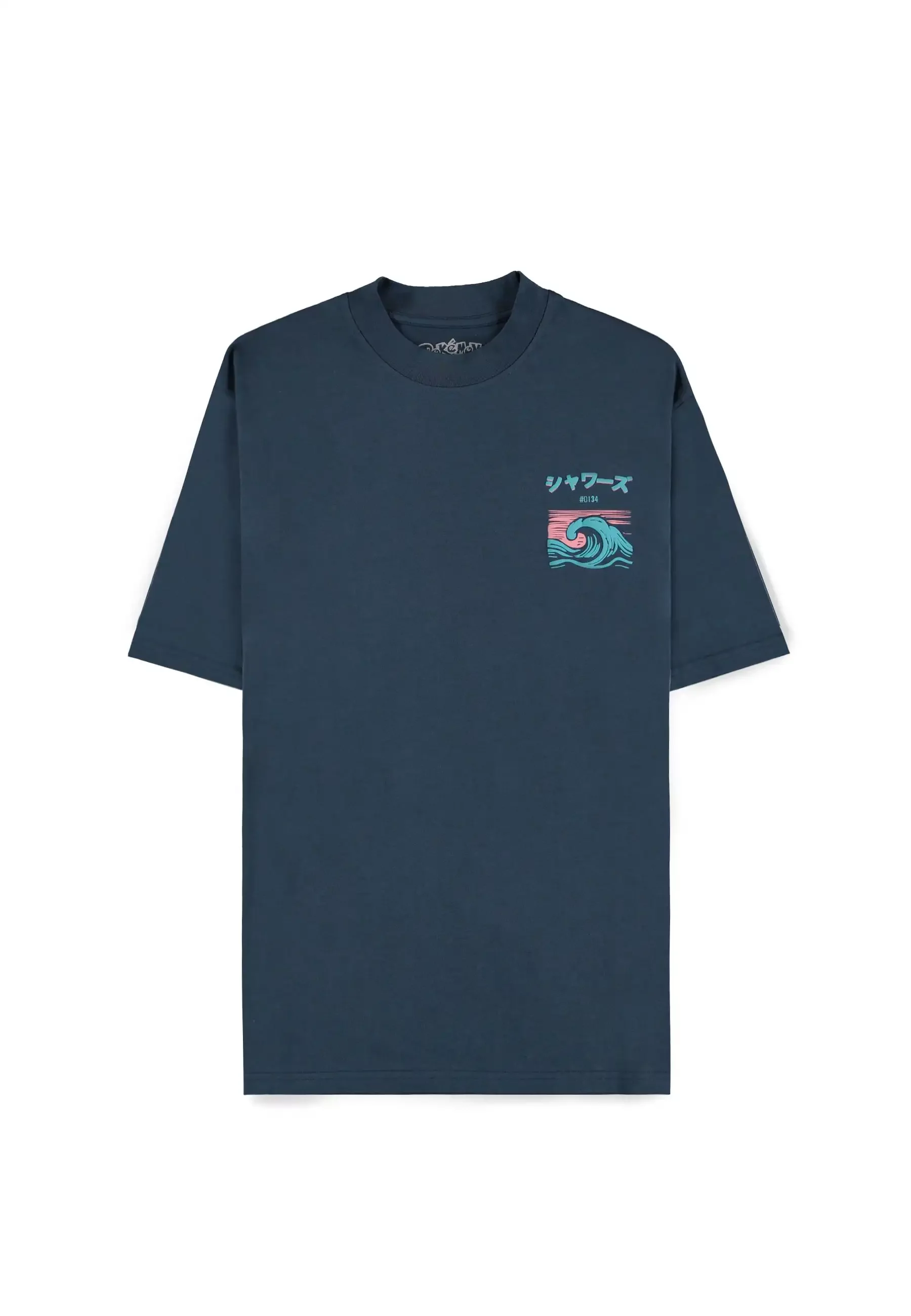 Cooles T-Shirt mit Vaporeon in sattem Navy-Blau begeistert mit einem auffälligen Rückenprint und einem dezentem Motiv auf der Brust.