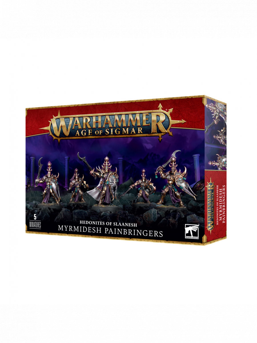 Stürzt euch in den Kampf mit der Eliteeinheit Myrmidesh Painbringers aus der Armee Hedonites of Slaanesh. Diese Meister von Schmerz und Perfektion vereinen tödliche Eleganz mit unerschütterlicher Disziplin und sind dadurch eine gefürchtete Macht auf jedem Schlachtfeld.
