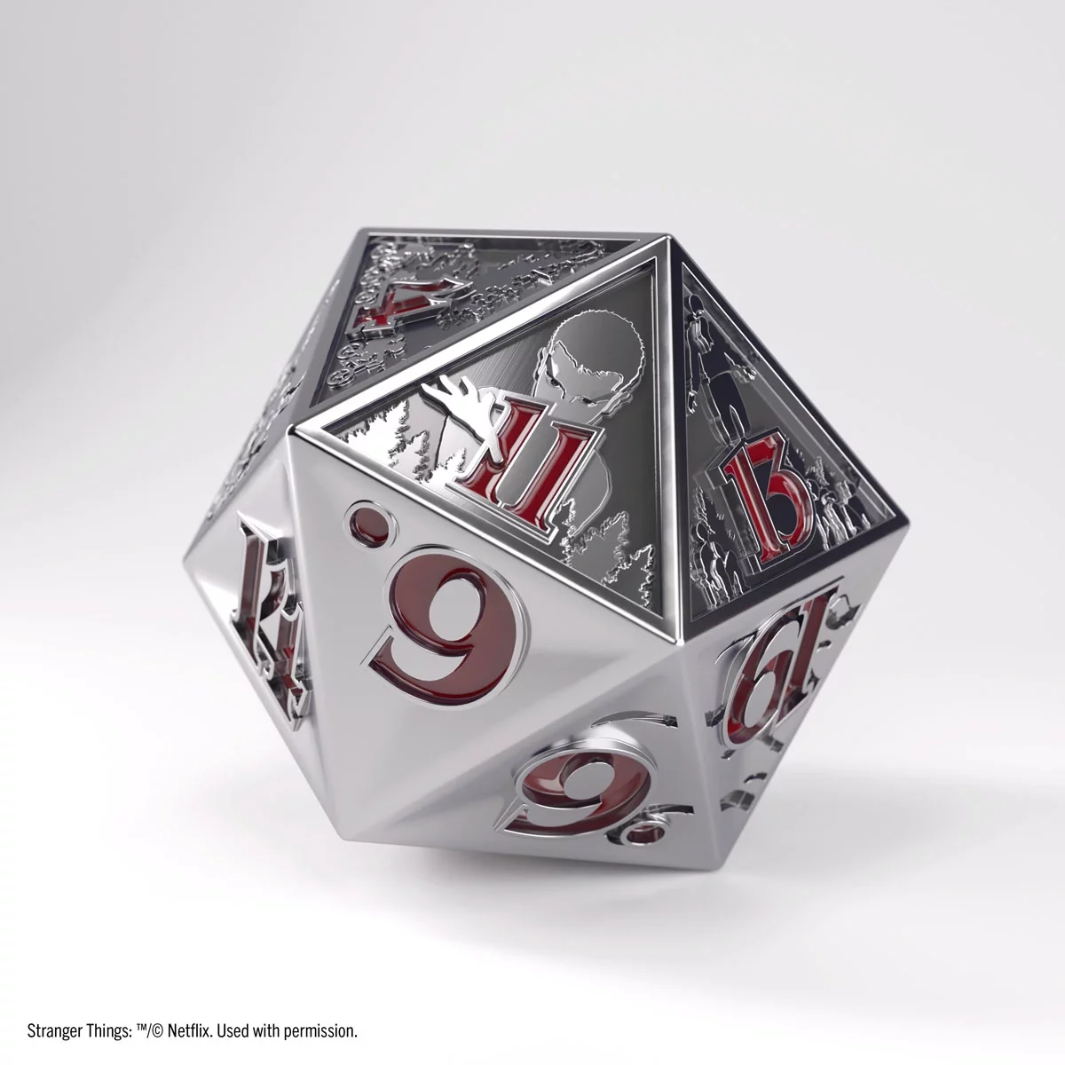 Der Würfel mit einem Durchmesser von 27 mm besticht durch detailreiche Gravuren mit Symbolen und Szenen aus der Serie, hervorgehoben durch die kontrastreiche rote Farbe. Perfekt geeignet für RPGs, Brettspiele oder als außergewöhnliches Sammlerstück aus der Upside-Down-Welt.Material: Metall -